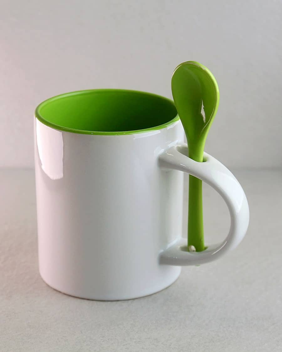 Друк на горнятах з білим покриттям, тоді як внутрішня сторона і ручка кольорові. Кількість кольорів – 9, ціна трохи вище, ніж на білі кружки, але оригінальний і привабливий вигляд чашок того вартує.
