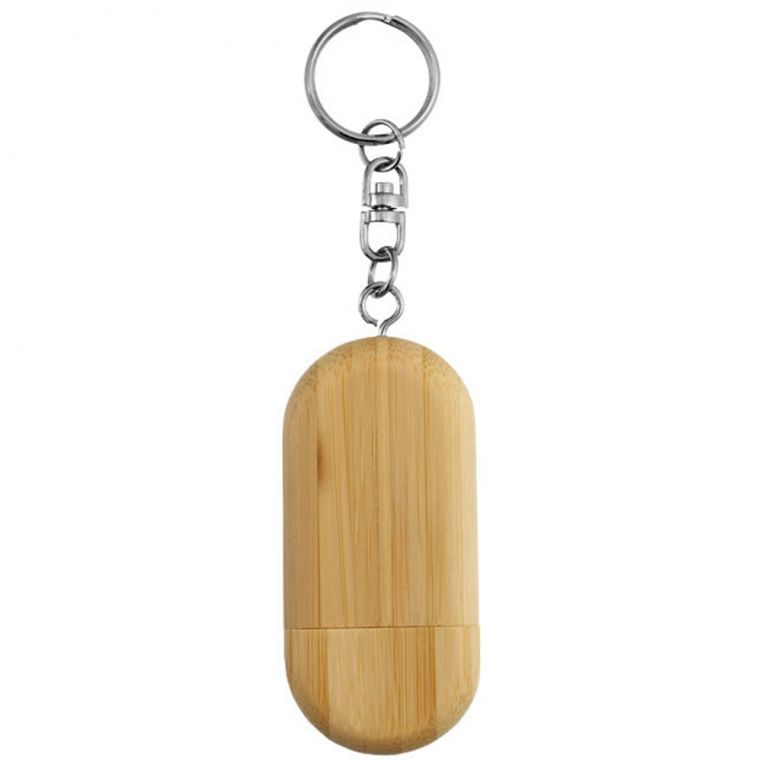 Флешка з корпусом із пресованого бамбука. Кришка надійно кріпиться до корпусу завдяки магнітам та захищає чіп від пилу та пошкоджень. На корпусі є кільце і ланцюжок для кріплення як брелок.