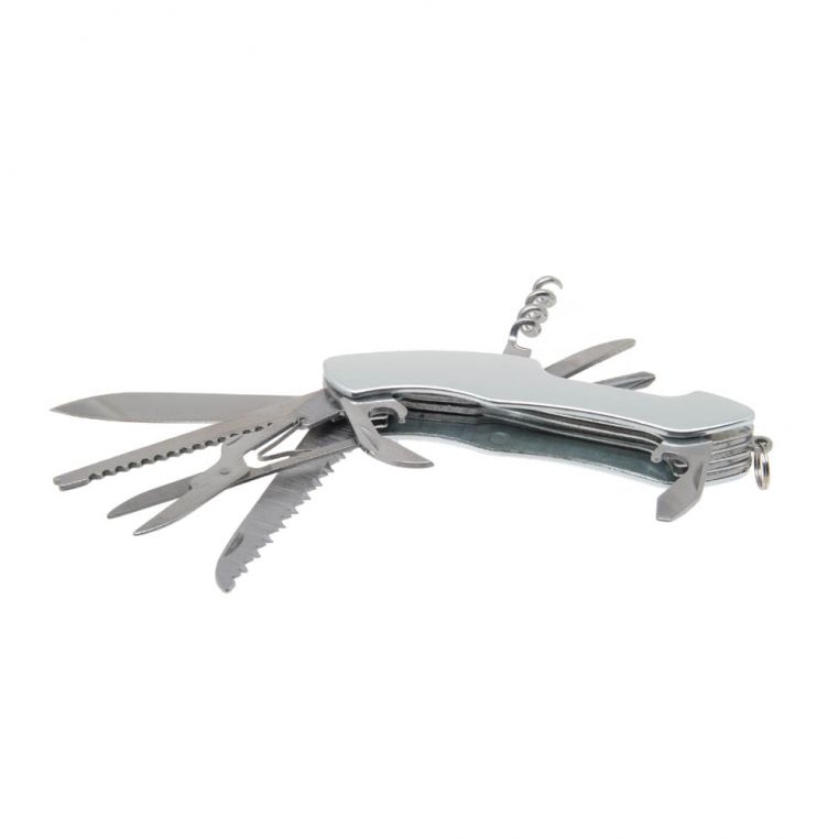 Компактний багатофункціональний інструмент, який поєднує 11 інструментів. Мультитул включає: ножиці, ніж, одну велику та одну маленьку пилку, відкривачки для консервів та пляшок, штопор, пилочку для нігтів, шило, дірокол та викрутку.