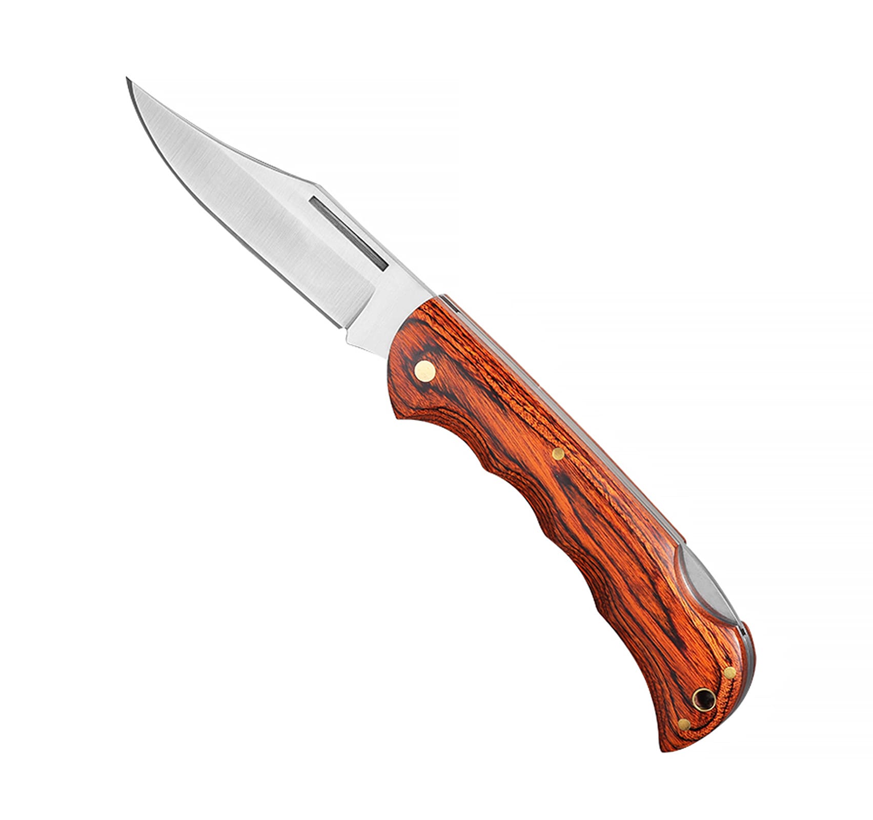Ніж з високоякісної нержавіючої сталі, гострим лезом з фіксатором. Тримач з дерев’яними вставками. Розмір леза 9,9 см., розмір в закритому стані 10,8Х3,3Х1,1 см.