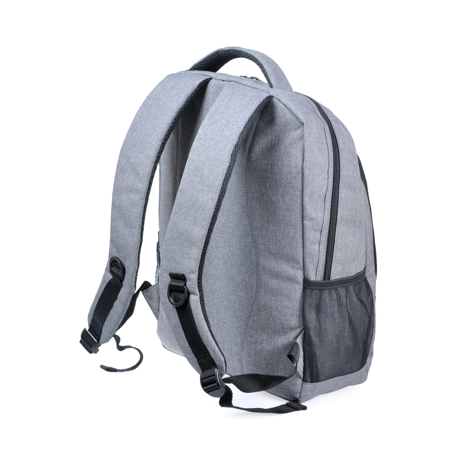 Рюкзак для ноутбука 15”. Має одне велике відділення, з фіксатором для ноутбука, 1 фронтальну кишеню на блискавці та 2 бокові, М’яка спинка, лямки з пасивною системою вентиляції. Ущільнена м’яка підкладка. Розмір синьої вставки: горизонталь – низ 24 см, верх 22 см, вертикаль: 14,4 см. Матеріал: Поліестер під імітацію джута.