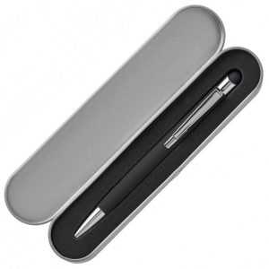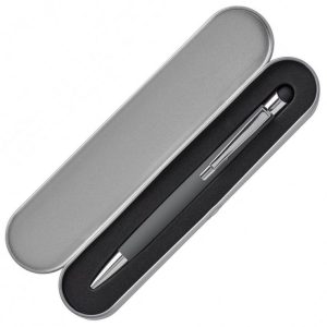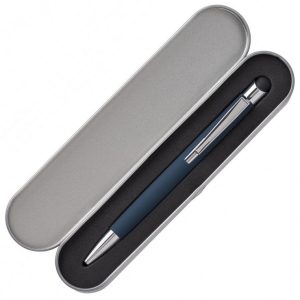 Алюмінієва кулькова ручка в металевому футлярі. Має гумове покриття та наконечник для роботи з сенсорним екраном. Матеріали: ABS-пластик, алюміній, метал. Механізм – кнопковий.