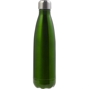 Термос із подвійними стінками з нержавіючої сталі. Корпус виготовлений у формі пляшки.