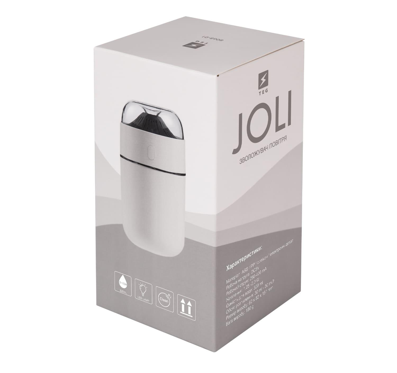 Зволожувач повітря Joli має лаконічний сучасний дизайн. Зручна конструкція для наповнення води. Не створює постороннього шуму. Має додатковий режим яскравого підсвічування.
